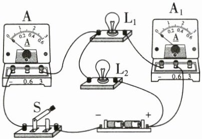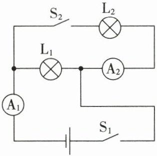 )A.只闭合$S_{1}$时,$L_{1}$发光、$L_{2}$不发光,$A_{1}测通过L_{1}$的电流