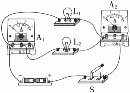 $L_1$与$A_1$串联的支路和$L_2$并联,$A_2$在干路。