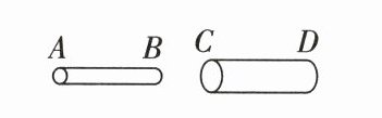 3. 如图所示,$ AB $ 和 $ CD $ 是由同种材料制成的长度相同、横截面积不同的两段导体,比较这两段导体的电阻大小,有(