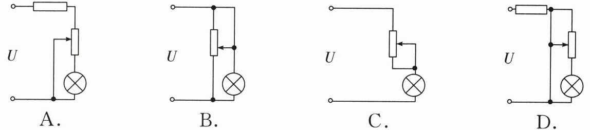 6. 如图所示是用滑动变阻器调节灯泡亮度的几种方案,你认为可能达到目的的方案是(
