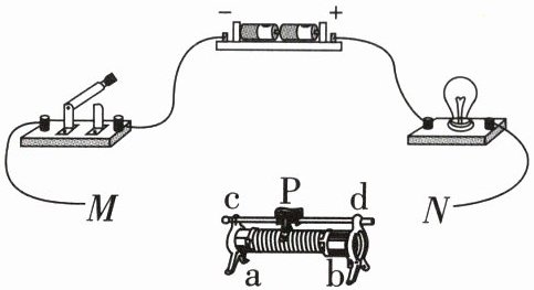 )A.若 $ M $ 接 $ c $ 接线柱,$ N $ 接 $ d $ 接线柱,滑动变阻器接入电路中的阻值相当于一根导线