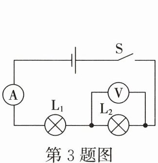 3. 如图所示,闭合开关 $ S $ 后,电流表几乎无示数,电压表示数近似等于电源电压,产生这一现象的原因可能是(