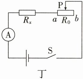 。(5)小滨用电流表和一个已知最大阻值为 $ R_0 $ 的滑动变阻器测量未知电阻器 $ R_x $ 的电阻,设计的电路图如图丁所示,电源电压未知且保持不变。实验操作如下: