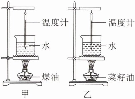 10. 小东同学学习了燃料的热值后,自己设计一个实验来探究煤油和菜籽油的热值大小关系。他组装了如图所示的装置进行实验。为了保证实验结论的可靠性,小东同学选择了两套相同的装置,在实验中还应保持