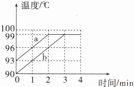 8. 小明取少量燃料置于燃烧皿中,点燃后对密闭的 $ 100 \, g $ 热水加热 $ 4 \, min $,然后立即将燃料熄灭,消耗燃料 $ 4.2 \, g $。根据实验数据绘制的水温随时间变化的图像如图中 a 所示。已知此过程中燃料均匀燃烧放热,该燃料的热值为 $ 2×10^{6} \, J/kg $,水的比热容为 $ 4.2×10^{3} \, J/(kg·^{\circ} C) $,整个过程中忽略水的质量变化,下列说法中正确的是(