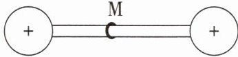 8. 如图所示是两个带等量正电荷的硬橡胶球,按图示方式将一个金属环 M 套在一根光滑的绝缘杆的中间位置,且恰好平衡,则金属环 M 的带电情况是