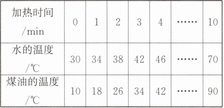 相同的水和煤油,分别倒入烧杯中,用电加热器加热,当它们吸收相同的热量时,通过比较升高的温度