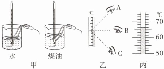 来比较不同物质吸热能力的强弱。(4)如图乙所示,小姜正确使用温度计测量液体的温度,按照图中