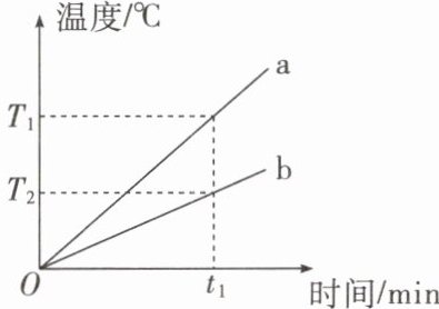 9. (多选)如图所示是根据“探究不同物质吸热能力”实验的数据绘制的 $ a $、$ b $ 物质的温度—时间图像,实验中两种物质的质量相同,初温相同,选用的加热器相同,由图像可知(