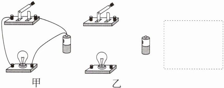 解析:根据图甲可知,闭合开关,电流没有回到负极,故此时电路中不会有电流,小灯泡不亮;正确的连接方式是电流从电源正极出发,经开关、小灯泡回到电源的负极。