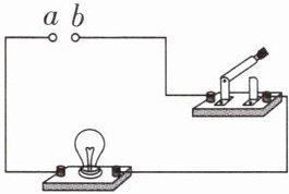 7. 如图所示,用导线把一个小灯泡和开关连接起来,要使灯泡发光,除在 a、b 之间接入