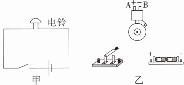 10. (2025 昆明期中)如图甲所示是电铃的电路图,请根据甲图在乙图中连接它的实物电路(元件位置不动,导线不交叉)。