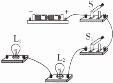 解析:根据题意可知$,L_1$和$L_2$并联;S控制整个电路,则S在干路上;$S_1$只控制$L_2,$则$S_1$与$L_2$串联。
