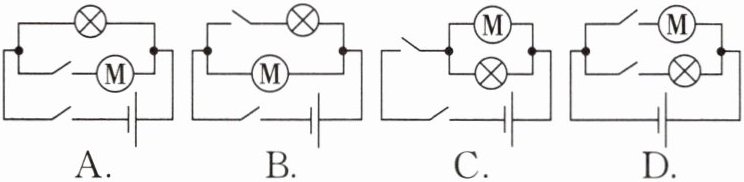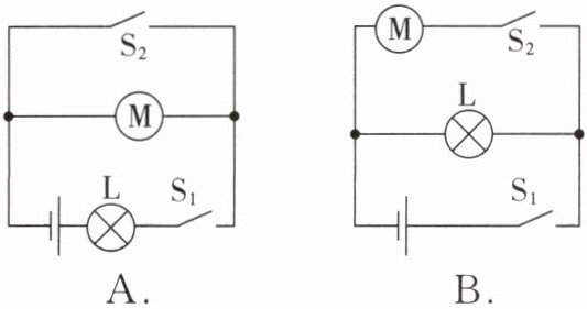 2. (物理学与日常生活)骑共享电动自行车不戴头盔存在安全隐患,于是小明同学设计了以下方案:骑行前,扫码成功后开关 $ S_1 $ 闭合,指示灯 $ L $ 亮,但电动机不工作;从车头取出头盔并戴上后,头盔内遥控设备遥控 $ S_2 $ 闭合,电动机才通电工作;若只戴头盔不扫码则无法骑行。下列电路符合以上设计要求的是(