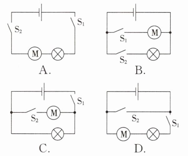 3. 下列选项中,开关$ S_{1} $、$ S_{2} $闭合后,组成串联电路的是(