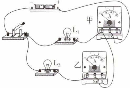 9. (多选)如图所示的实物电路中,当开关闭合时,甲电流表的示数为0.5 A,乙电流表的示数为0.2 A。则下列判断正确的是(