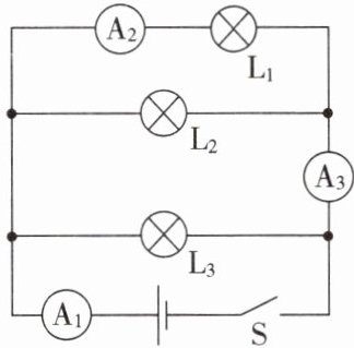 8. 如图所示,闭合开关S,电流表$ A_{1} $、$ A_{2} $、$ A_{3} $的示数分别为$ I_{1} $、$ I_{2} $、$ I_{3} $,它们的大小关系正确的是(