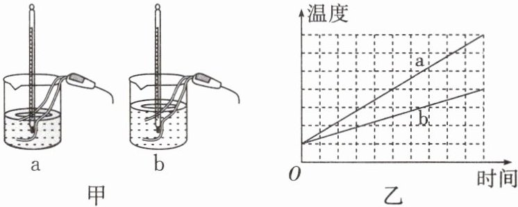 4. (2024 湖北)如图甲,利用相同规格的加热器加热等质量的 a、b 两种液体,得到温度随时间变化的图像如图乙。分析图像可知(