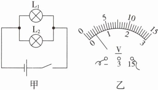 (2)如果将电压表并联接在$L_{1}$两端,闭合开关,电压表示数如图乙所示,那么接下来的操作是:断开开关,____(请选择下列正确的选项)。