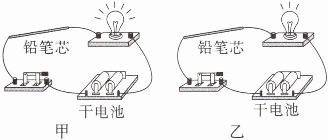 等因素是否相同。(1)图乙中铅笔芯的硬度比图甲大,开关闭合后,张华根据