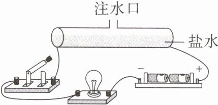 1. 向塑料管中注入一定量的盐水,闭合开关,观察小灯泡亮度;然后向塑料管中加入适量盐并搅拌均匀(或加入适量水并搅拌均匀),再次闭合开关,观察小灯泡亮度变化。