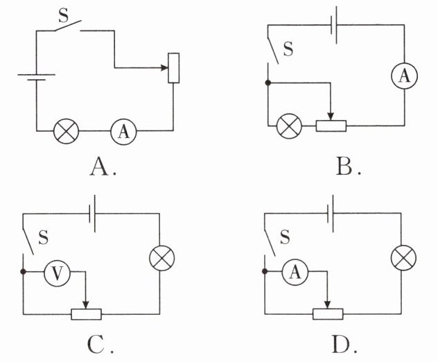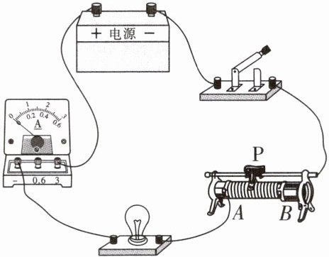 8. 小刚用如图所示的实验器材来研究调光台灯的工作原理,并连接了部分实验电路。