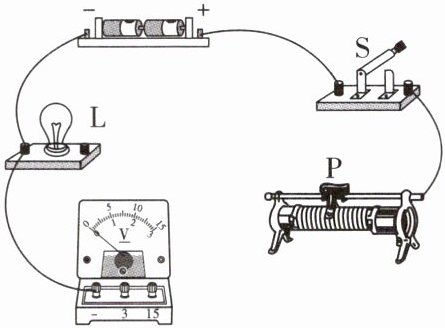 6. 在如图所示的电路中,有两根导线尚未连接,请用笔画线代替导线补全实物图。要求:①电压表能准确测量小灯泡两端的电压;②闭合开关S,向右端移动滑动变阻器的滑片P,灯变亮。