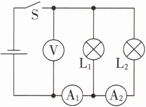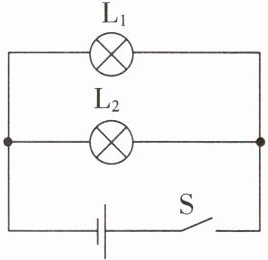 2. 如图所示,灯 $ L_{1} $、$ L_{2} $ 规格相同,闭合开关 $ S $ 后,发现灯 $ L_{1} $ 不发光、$ L_{2} $ 发光。此电路的故障可能是(