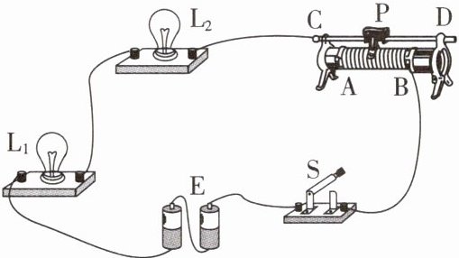 1. 如图所示,闭合开关 $ S $,发现灯泡 $ L_{1} $ 亮,$ L_{2} $ 不亮,调节滑动变阻器滑片 $ P $,$ L_{1} $ 变亮,$ L_{2} $ 始终不亮,出现这一现象的原因可能是(