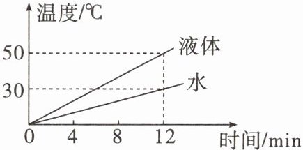 10. (2025 昆明阶段练习)某液体和水的质量相同、初温相同,每分钟吸收的热量均相同,根据图像判断:该液体的比热容为