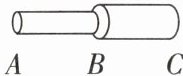 2. 如图所示,$ AB $ 和 $ BC $ 是由同种材料制成的长度相同、横截面积不同的两段导体。将它们串联后连入电路中,比较这两段导体两端的电压及通过它们的电流,则(