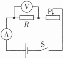 该电路为串联电路,电流表A测电路中的电流,电压表V测电阻R两端的电压,滑动变阻器P与电阻R串联。