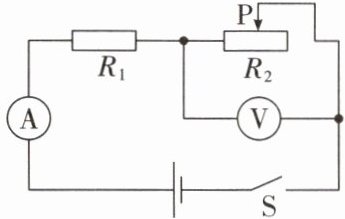 [典例1](2025昆明校级期中)如图所示,定值电阻$R_{1}的阻值为10\ \Omega$,滑动变阻器$R_{2}$上标有“$20\ \Omega$ $2\ A$”字样。闭合开关$S$后,调节滑动变阻器的滑片$P$,当滑片$P$移至最右端时,通过$R_{1}的电流为0.3\ A$。