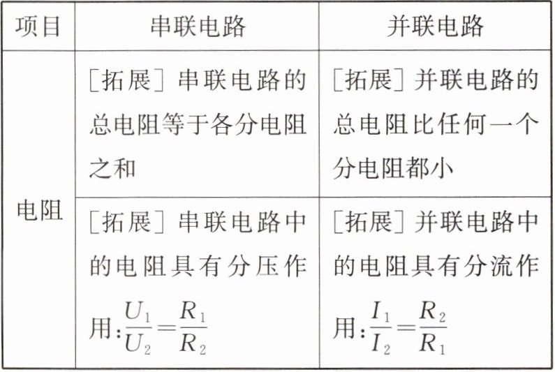 | 电阻 | [拓展] 串联电路的总电阻等于各分电阻之和