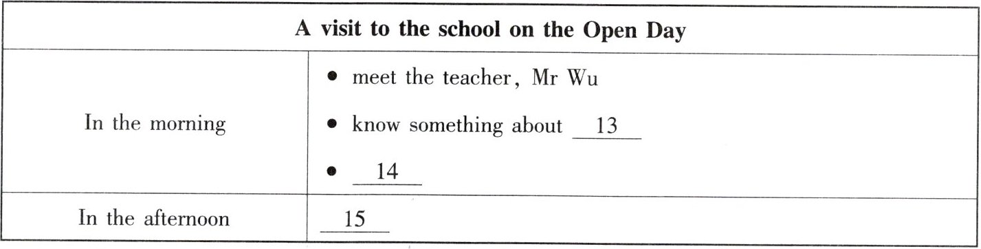 听第一篇短文,回答第13至15小题。请根据短文内容,选择正确答案,完成信息记录表。