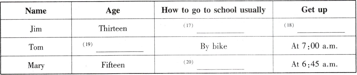 | Name | Age | How to go to school usually | Get up |