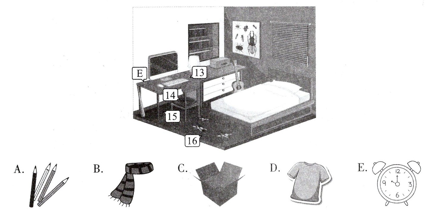 第二部分 听短文,将物品与图片上的位置配对