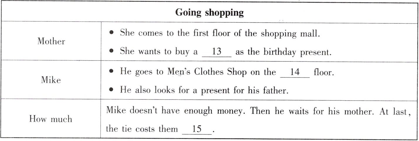 听第一篇短文,回答第13至15小题。请根据短文内容,选择正确答案,完成信息记录表。