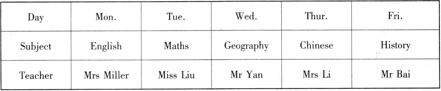 4. 表格中Tue.对应的Subject是Maths,选B。