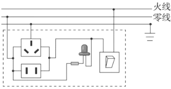 18. 如图所示是常用的插线板电路简化图。开关断开时指示灯不发光,插孔不提供工作电压;开关闭合时指示灯发光,插孔提供工作电压;若指示灯损坏,开关闭合时插孔也能提供工作电压。请在图中画出开关、指示灯、孔的连接方式(补充完整)。