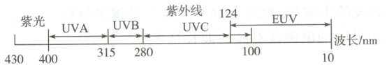 4. 紫外线按波长大小可分为多个子波段,如图所示,其中 EUV 段可用于制造芯片,则 EUV (
