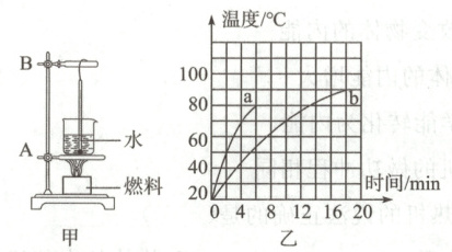 (3)小明选用燃料a和燃料b进行实验,正确操作,小明记下了各个时刻烧杯中的水温,绘制了如图乙所示的图像,则可初步判断燃料 的热值大。