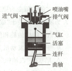 13. 小红到乡村参加劳动实践,发现农用拖拉机使用的是柴油机,其结构原理如图。关于其四冲程柴油机的描述正确的是(