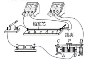 ①线夹可在铅笔芯上来回滑动,设计电路时可将铅笔芯与线夹的组合视为