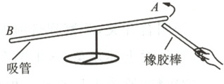 3. 把餐巾纸摩擦过的塑料吸管放在支架上,吸管能在水平面内自由转动。如图所示,手持带负电的橡胶棒,靠近吸管A端,A端会远离橡胶棒。实验中(