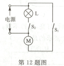 12. 电冰箱的简化电路如图所示,M是电冰箱压缩机内的电动机,L是电冰箱内的照明灯。下列判断正确的是(