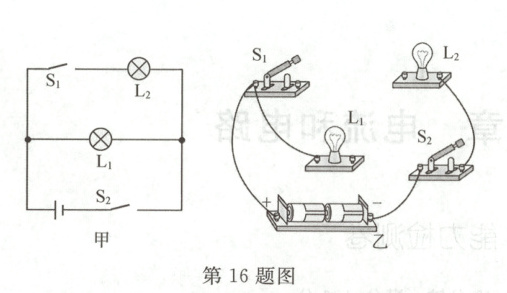 16. 根据图甲的电路图,用笔代替导线连接好图乙的实物图。(导线不能交叉)