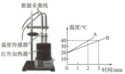 D.小乐用该装置实验得到水和食用油的温度随时间变化图线均为A,则$m_{水}:m_{油}=1:2$
