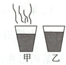 4. 如图所示,甲、乙两个相同的杯子分别装有温度不同的热水,其中甲杯中水的质量较小,且其上面的“白气”较浓。关于这两杯水,下列判断正确的是(