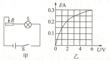 12. 如图甲所示电路,电源电压恒为 9 V,灯泡 L 的额定电压为 6 V,通过 L 的电流 I 随其两端电压 U 变化关系图像如图乙所示。闭合开关 S,下列分析正确的是(